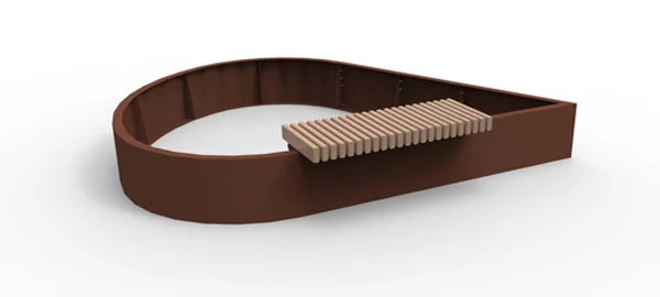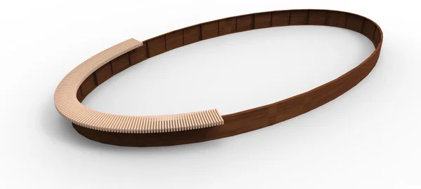 L’association de l’acier Corten pour la paroi et du bois exotique pour les assises confèrent un aspect épuré et naturel à l’ensemble.