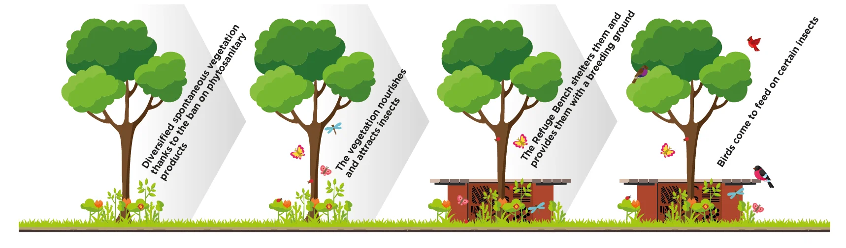 > The Refuge® Bench is thus an urban seat that is a combination of participatory science, encouragement for biodiversity and a way of promotingthe environment.