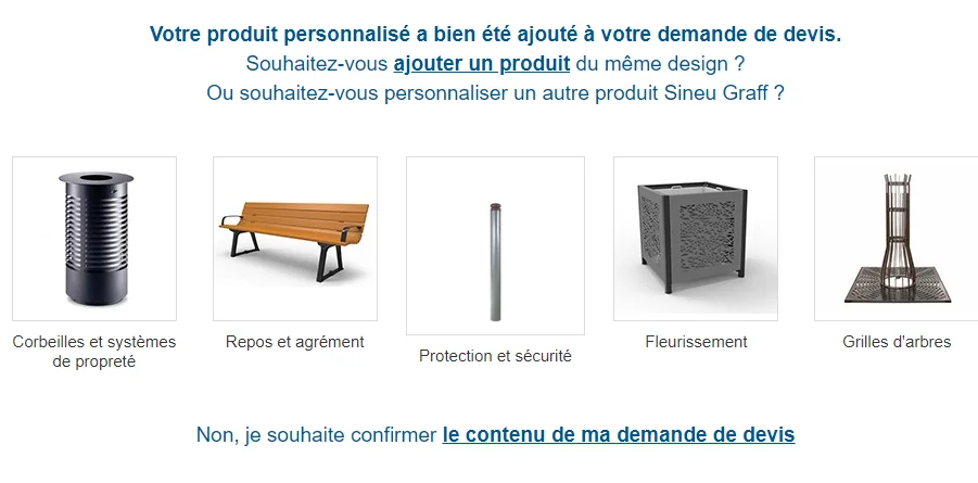 > Finally, enter the desired quantity and click on the button "Add to my quotation/order" to finalize the configuration of your furniture and continue to the quotation/order stage.
