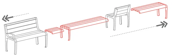 Twist est un système modulaire de mobiliers urbains : des éléments indépendants – chaise, fauteuil, banc, banquette, tablette – se déclinent et s’associent pour créer de nouvelles postures urbaines.