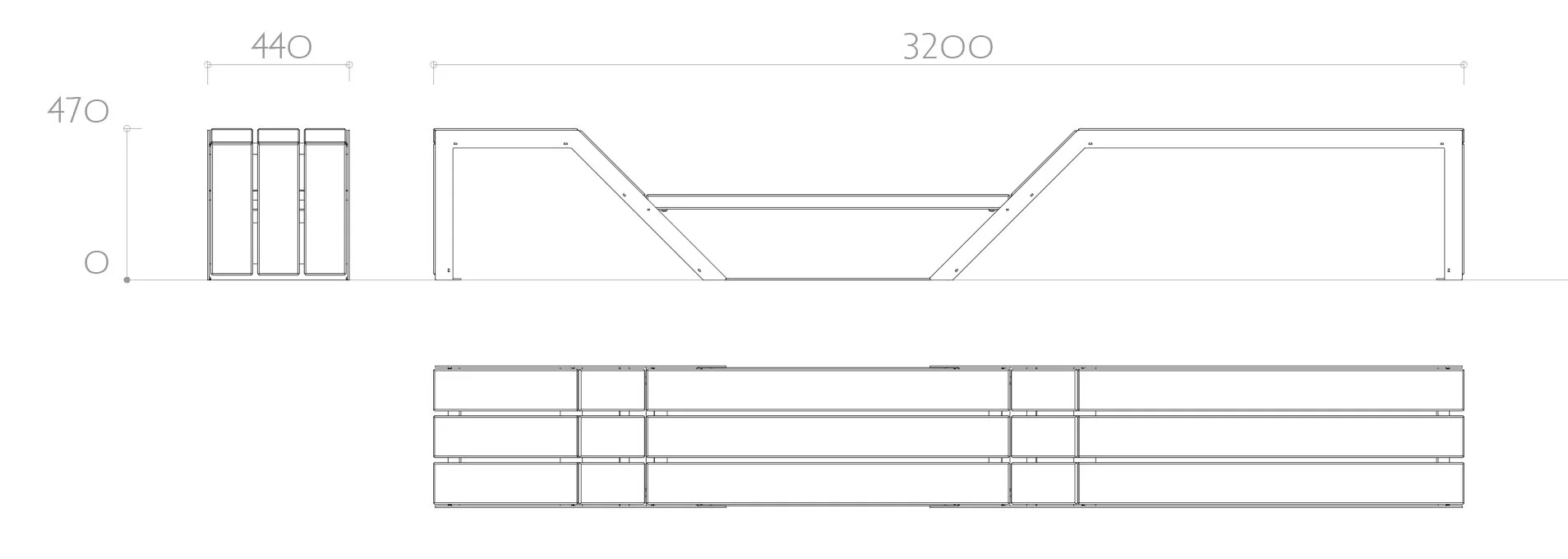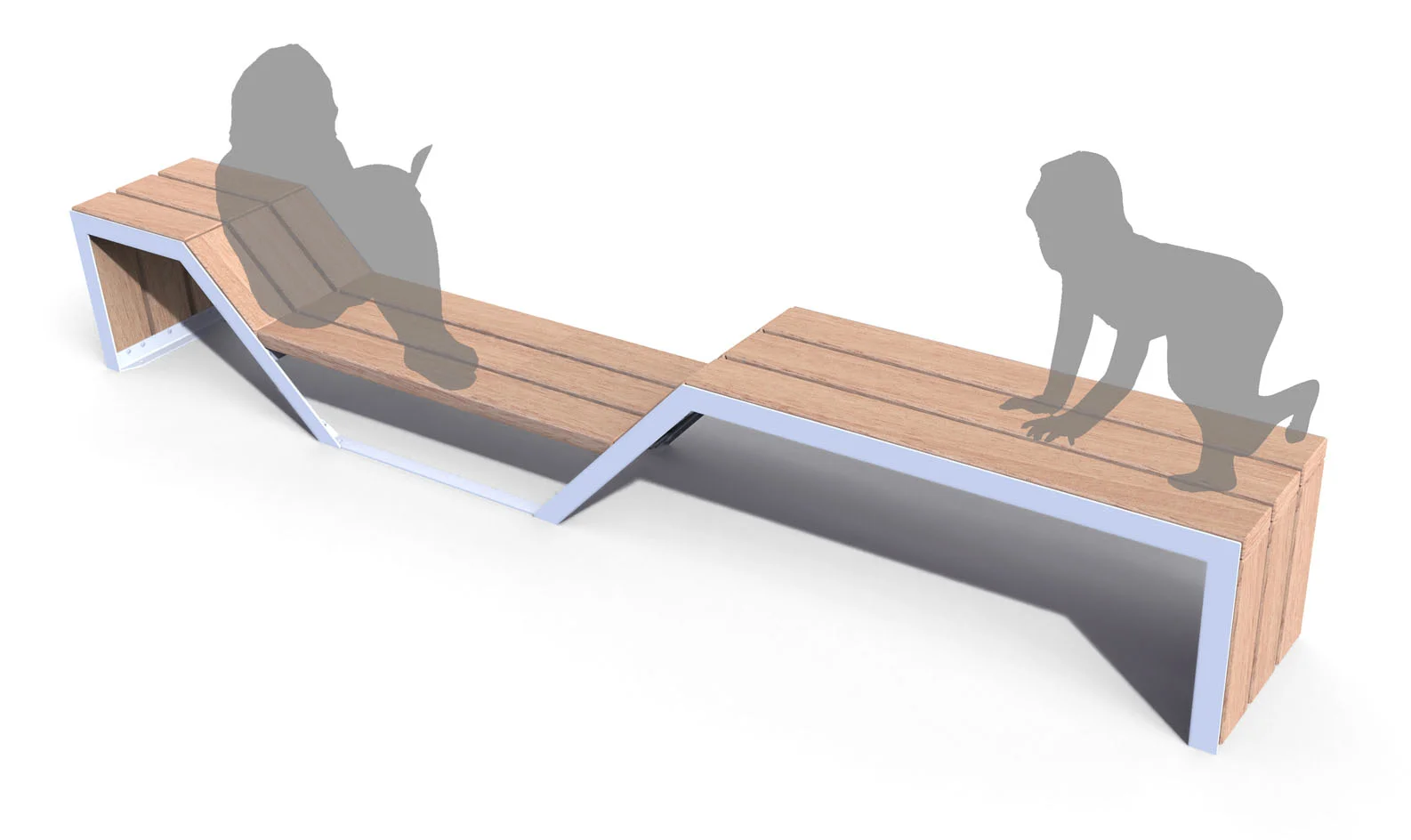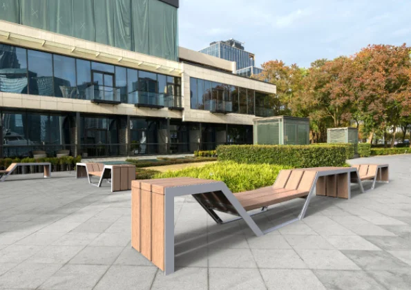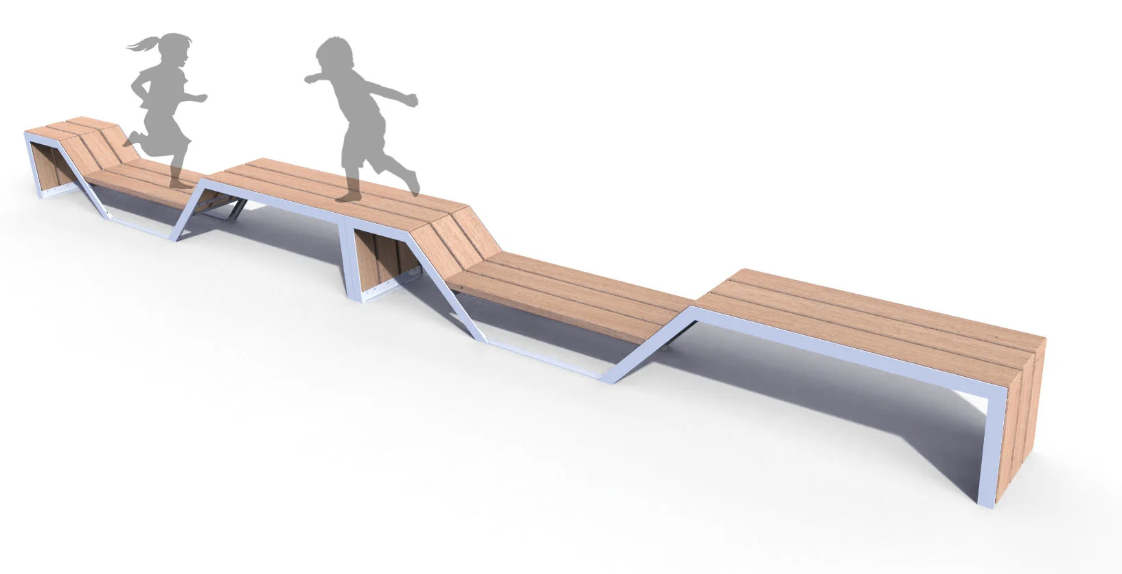 Dans des parcs ou des places publiques, le module peut s’additionner pour créer de vastes plateformes en largeur et/ou en longueur. La finesse et l’amplitude du design a pour but de créer du rythme et d’accompagner la linéarité de la ville sans l’obstruer. Elle apportera de la vie, de l’émotion dans vos espaces.